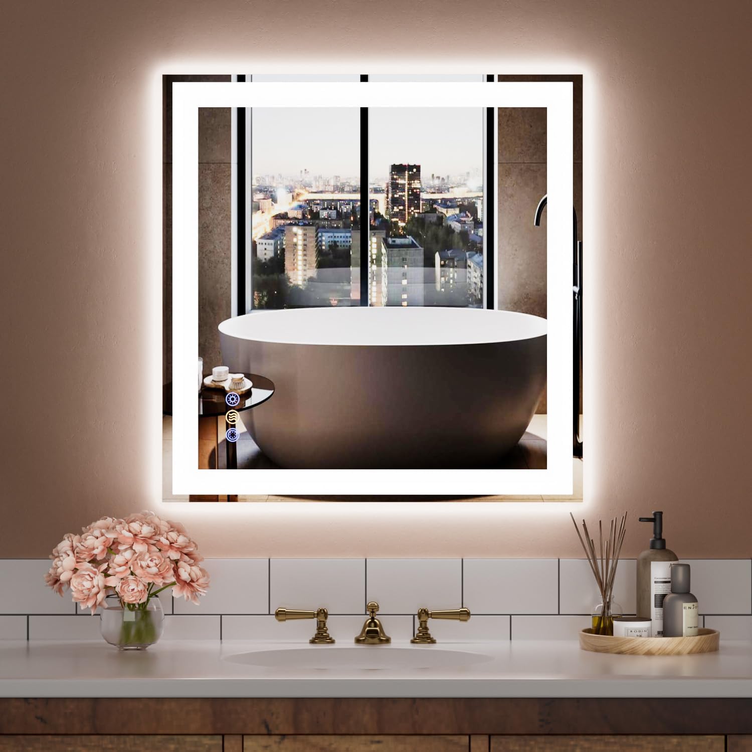 Callsky 36"x 36" LED Bathroom Mirror, 3 Colors LED Vanity Mirror with Lights, Wall-Mounted LED Smart Mirror with Front and Backlit, Controlled Separately, Anti-Fog, Stepless Dimmable, Memory(UL ETL)