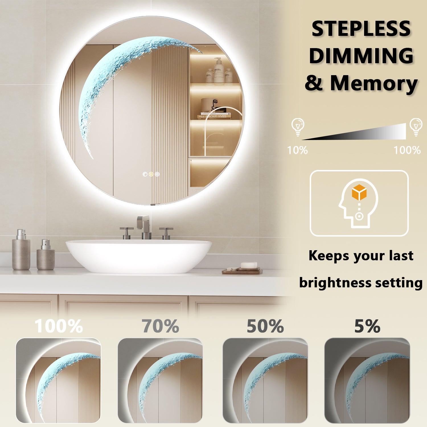- DUAL-LIGHT MIRROR – BACKLIT & MOONLIT – Elevate your space with dual lighting: soft moonlight and bright backlight for even, shadow-free illumination. Independent controls let you adjust each light separately to create the perfect ambiance. Perfect for bathrooms, bedrooms, hallways, or vanity spaces