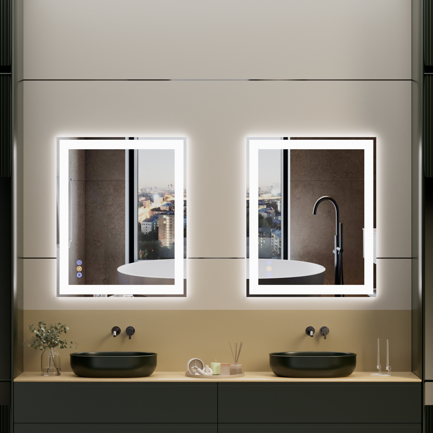- 【Front & Backlit Controlled Separately】You can control the front lit and backlit of the LED bathroom mirror separately, freely adjust the color temperature or brightness, Short press to switch color temperature (3000k/4000k/6500k) and switch ON/OFF front lit and backlit. Long press to adjust brightness(10-100%). Smart memory function remembers your last settings, offering convenience for everyday use